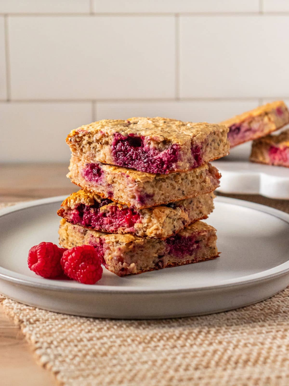 Unlike other breakfast protein bars, these are made without protein powder. All of the protein comes from the cottage cheese, chia seeds, egg, and rolled oats. They’re lightly sweetened with maple syrup and fresh berries.