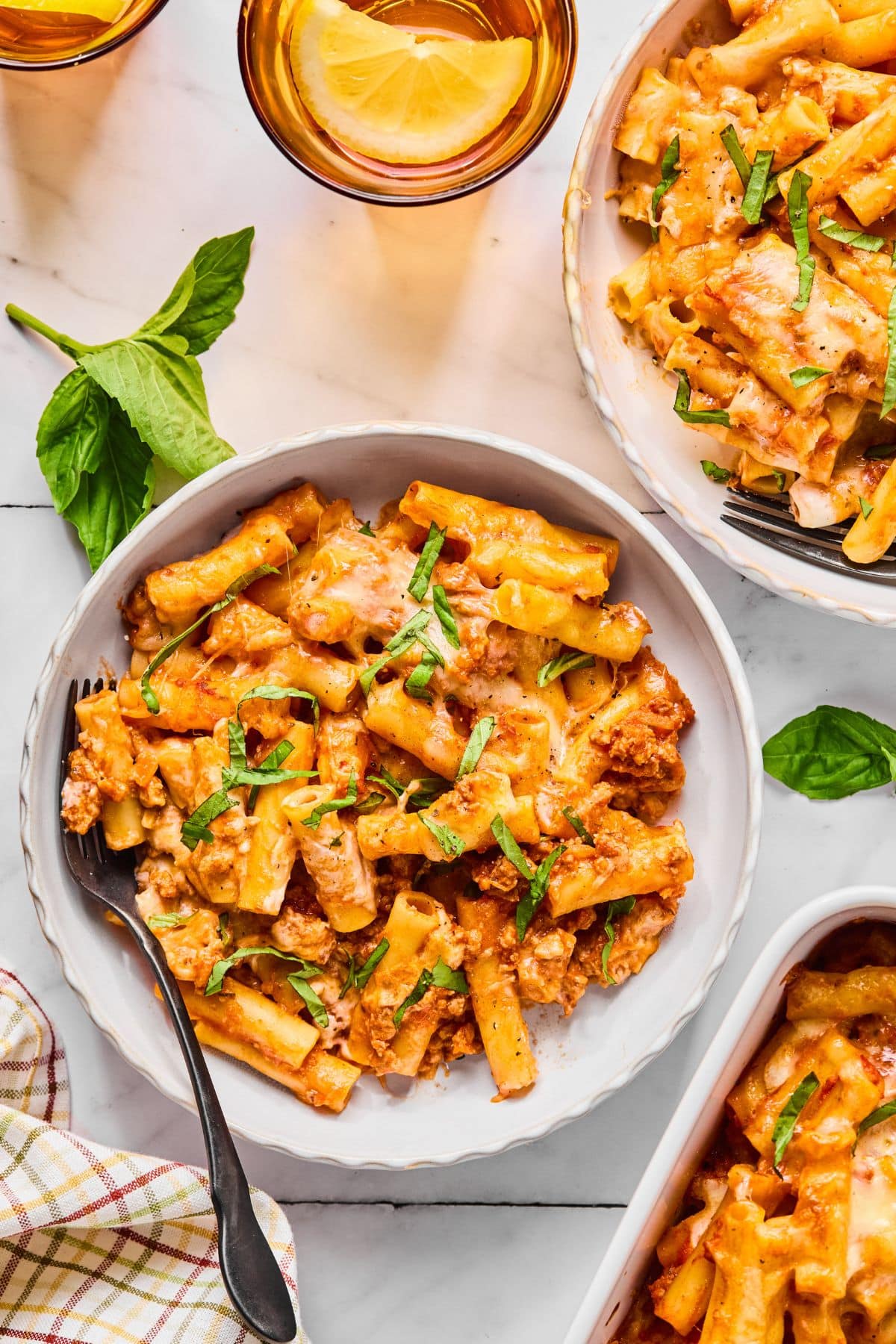 - Swap the Meat: Ground chicken, lean ground beef or shrimp would be great protein sources you can swap in this low calorie ziti recipe.