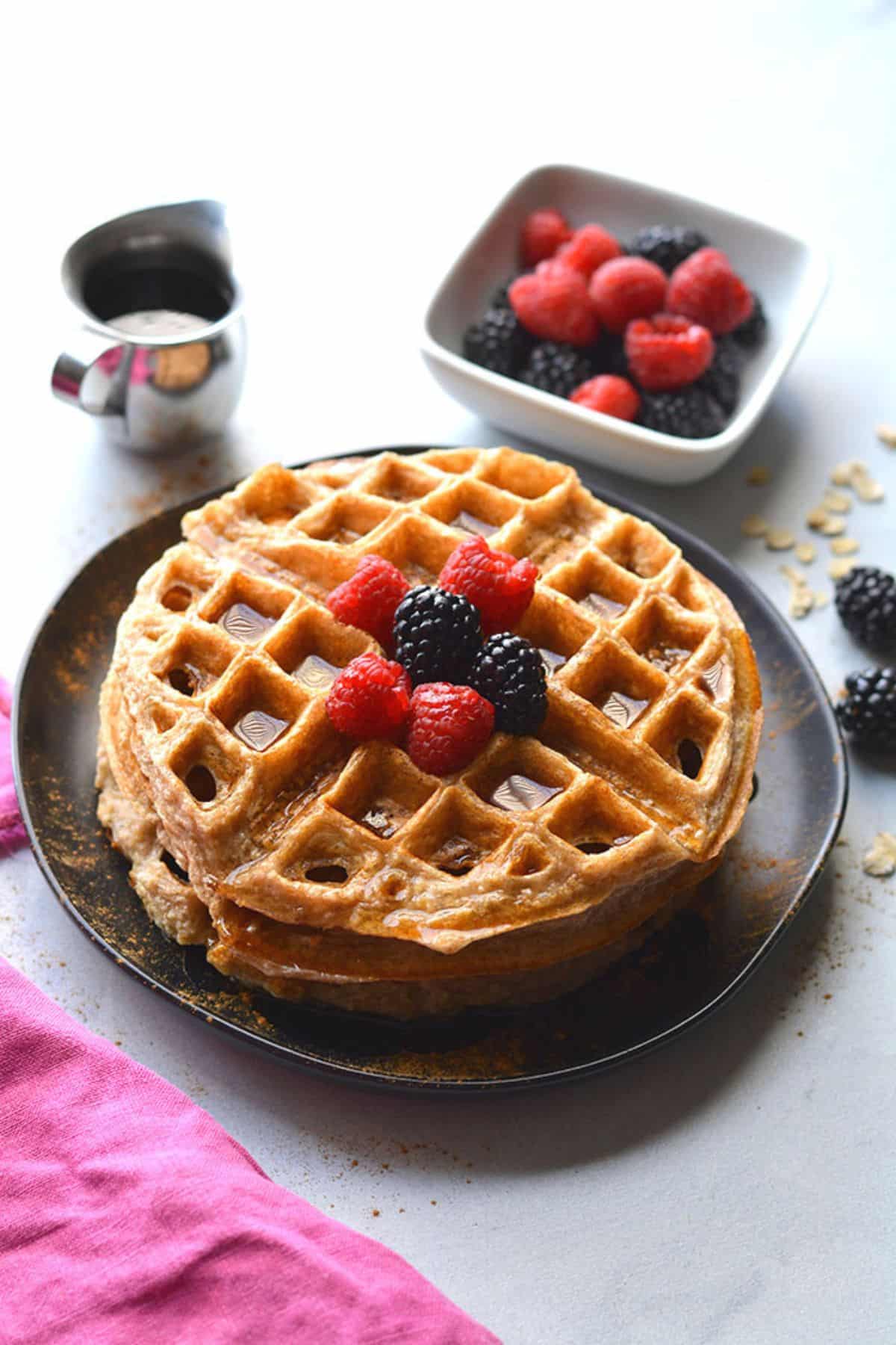 - Rolled Oats: Not only are oats higher in protein than regular flour, but they are also packed with fiber. They give the waffles a slightly sweet flavor and a moist texture. If you need the waffles to be gluten-free, you can use gluten-free rolled oats instead of regular.
